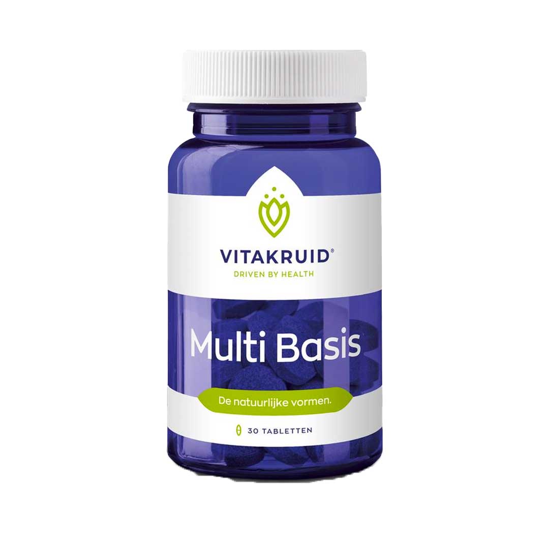 Vitakruid Multi Basis Tabletten is een uitstekende multivitamine die alle benodigde nutriënten biedt in de best opneembare vormen. Het is ideaal voor mensen die lichtere doseringen nodig hebben en alle nutriënten in de juiste verhoudingen willen hebben. Bovendien is één tablet per dag voldoende, dus het is gemakkelijk in te nemen. De multivitamine bevat foliumzuur en vitamine B12 voor extra energie bij vermoeidheid, evenals ruime hoeveelheden vitamine C, ijzer, selenium en zink voor de weerstand en calcium en vitamine D voor spieren en botten.