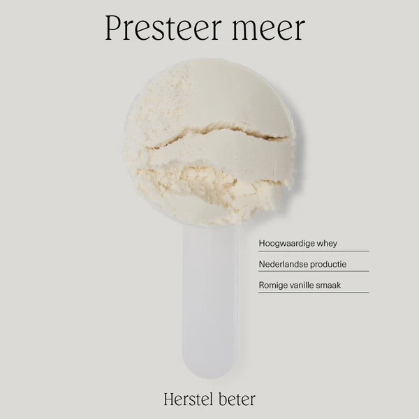 Samenstelling per dagelijkse portie (1 maatschep à 30 gram): Wei-eiwitconcentraat: 18,2 g, wei-eiwitisolaat 10,5 gram
