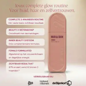 Daarom is de Hair & Skin Glow Bundel ontworpen voor minimaal 2 maanden consistent gebruik. In deze periode krijgen huid en haar de tijd om zichtbaar te reageren op de aangevoerde bouwstoffen.