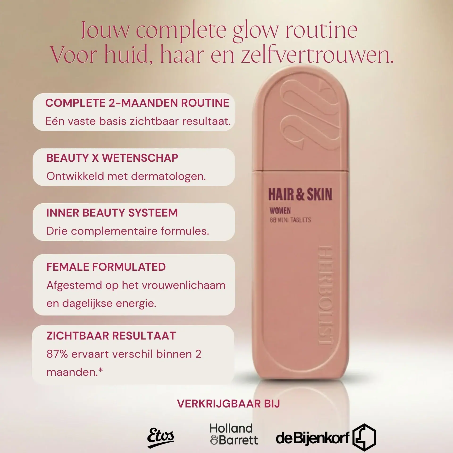 Deze bundel is een doordacht systeem dat huid en haar van binnenuit ondersteunt, opgebouwd op basis van wetenschap, praktijkervaring en jarenlange productontwikkeling.