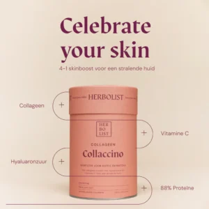 Vitamine C is toegevoegd om de effectiviteit van Collaccino verder te versterken. Vitamine C helpt namelijk bij het vormen van collageen en is essentieel voor het verstevigen van de huid. Daarnaast is vitamine C belangrijk voor de productie van kraakbeen en botten, ondersteunt het gezond tandvlees en draagt het bij aan de elasticiteit van de bloedvaten.
