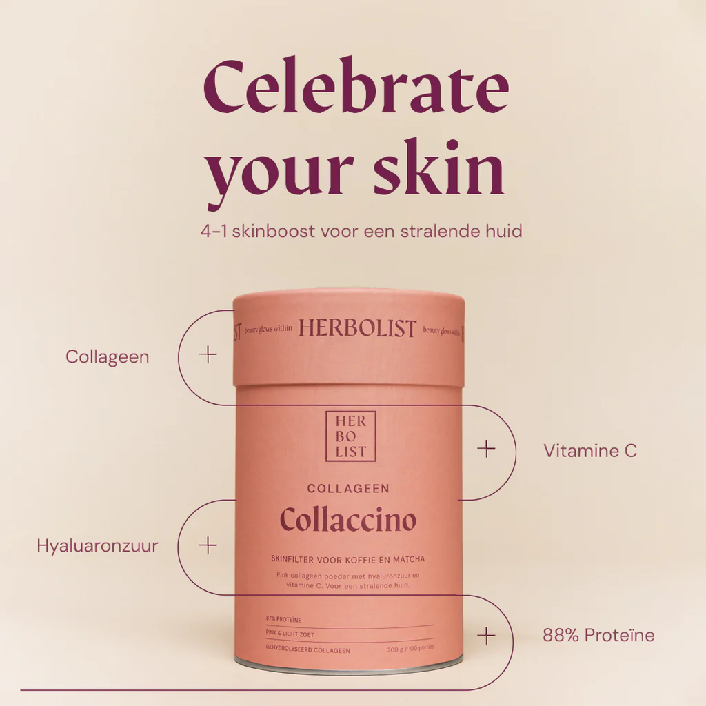 Collageen en hyaluronzuur zijn algemeen bekend in de beauty industrie. In tegenstelling tot traditionele crèmes en andere collageen producten, bevat Herbolist collaccino 100% werkzame stoffen en is het ook nog eens 6x zo goedkoop. En komt collageen nu ook in een trendy pink kleurtje.