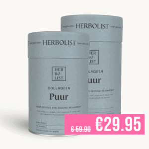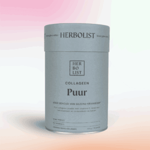 Herbolist Collageen Puur bevat rundercollageen peptiden en vitamine C in een luxe koker met 200 gram poeder.
