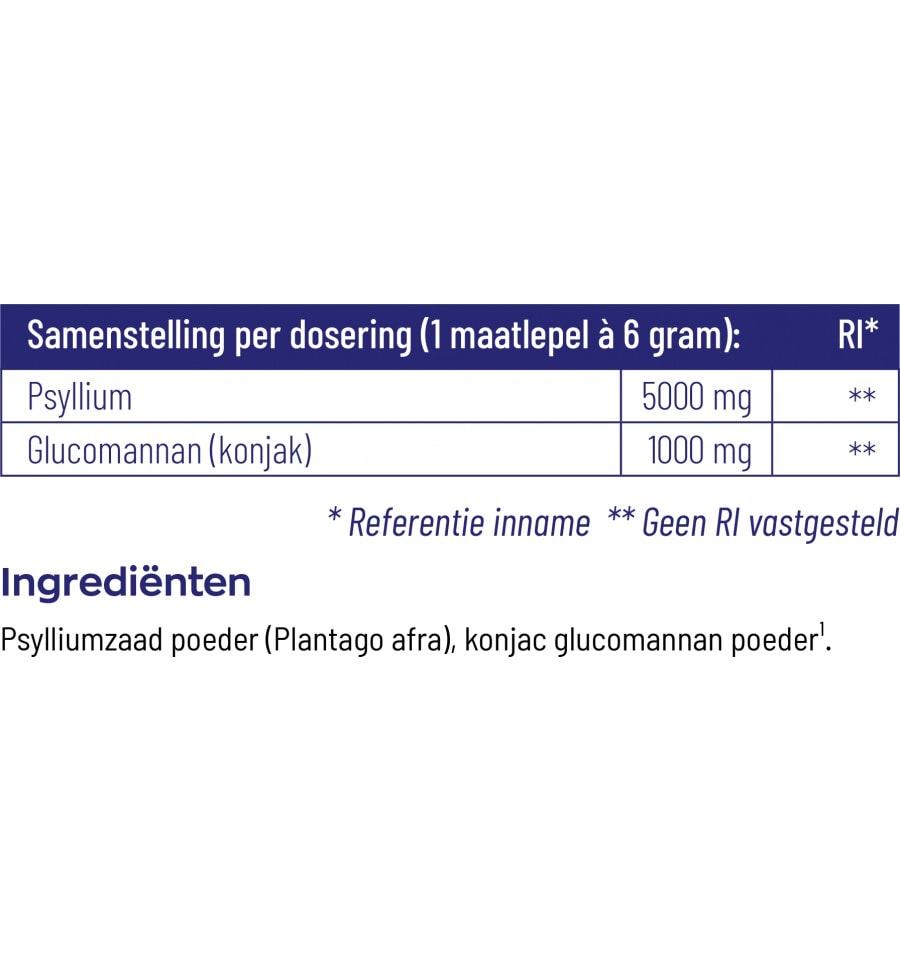 Vitakruid Psyllium & Glucomannan Poeder is een uniek vezelcomplex dat bestaat uit poeder van de Psyllium en de Glucomannan. Deze combinatie van oplosbare vezels heeft een hoge absorptiecapaciteit en is wetenschappelijk onderbouwd. Het poeder is gemaakt van uitsluitend geconcentreerde psyllium husk en wordt geleverd in granulaatvorm.