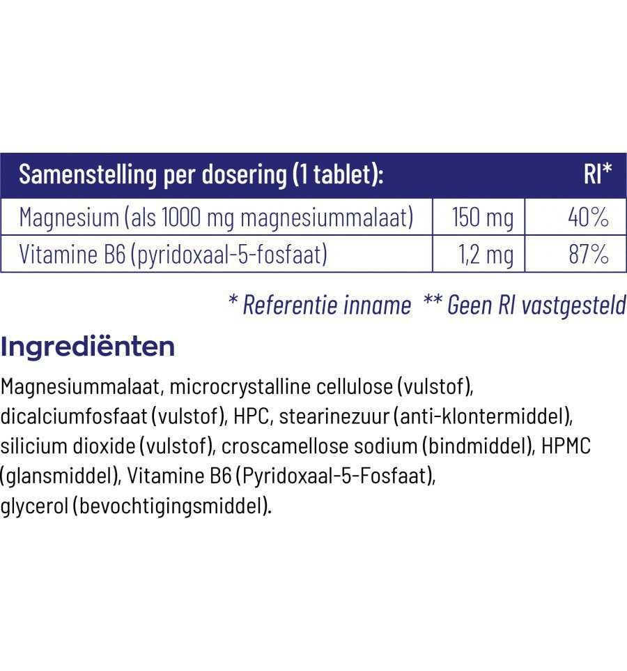 | Magnesium (als 1000mg magnesiummalaat) | 150mg