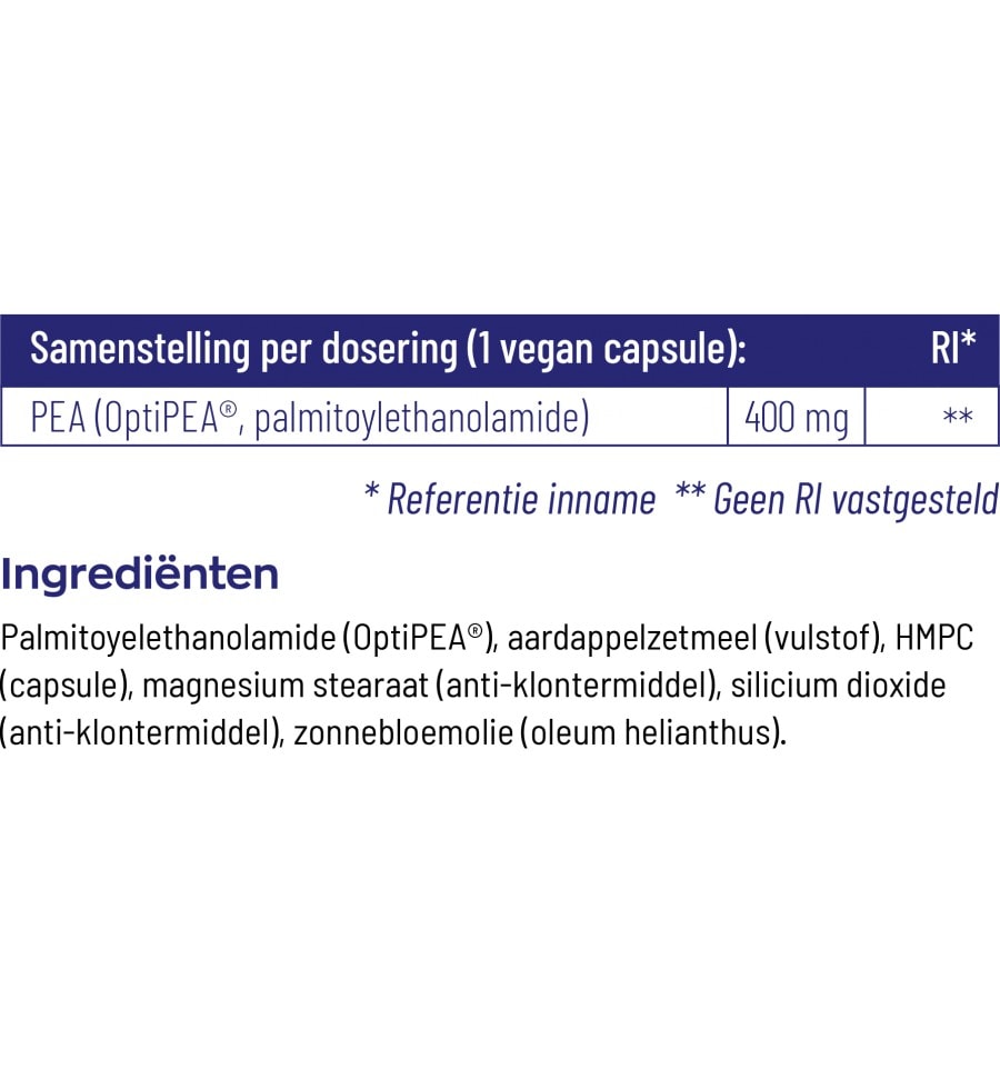 | Palmitoyelethanolamid (OptiPEA®) | 400 mg |