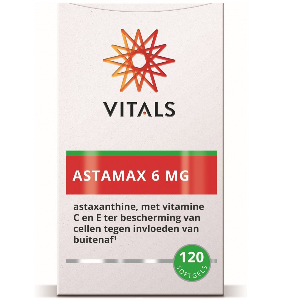 Vitals Astamax 6mg is een natuurlijk voedingssupplement van hoge kwaliteit dat astaxanthine bevat, een bijzondere carotenoïde die van nature voorkomt in algen, plankton en sommige planten, schimmels en bacteriën. Het supplement bevat 6 mg astaxanthine per softgelcapsule, aangevuld met antioxidanten vitamine C en vitamine E. Onderzoek toont aan dat hogere doseringen van astaxanthine aan te bevelen zijn voor optimale gezondheidsvoordelen. Vitals Astamax 6mg bevat daarom een hoge dosering van deze stof. AstaReal, de producent van deze astaxanthine, gebruikt een superieure productiemethode waarbij de groene microalg Haematococcus pluvialis in zijn totaliteit wordt gebruikt. Dit resulteert in een puur en natuurlijk supplement van de hoogste kwaliteit.