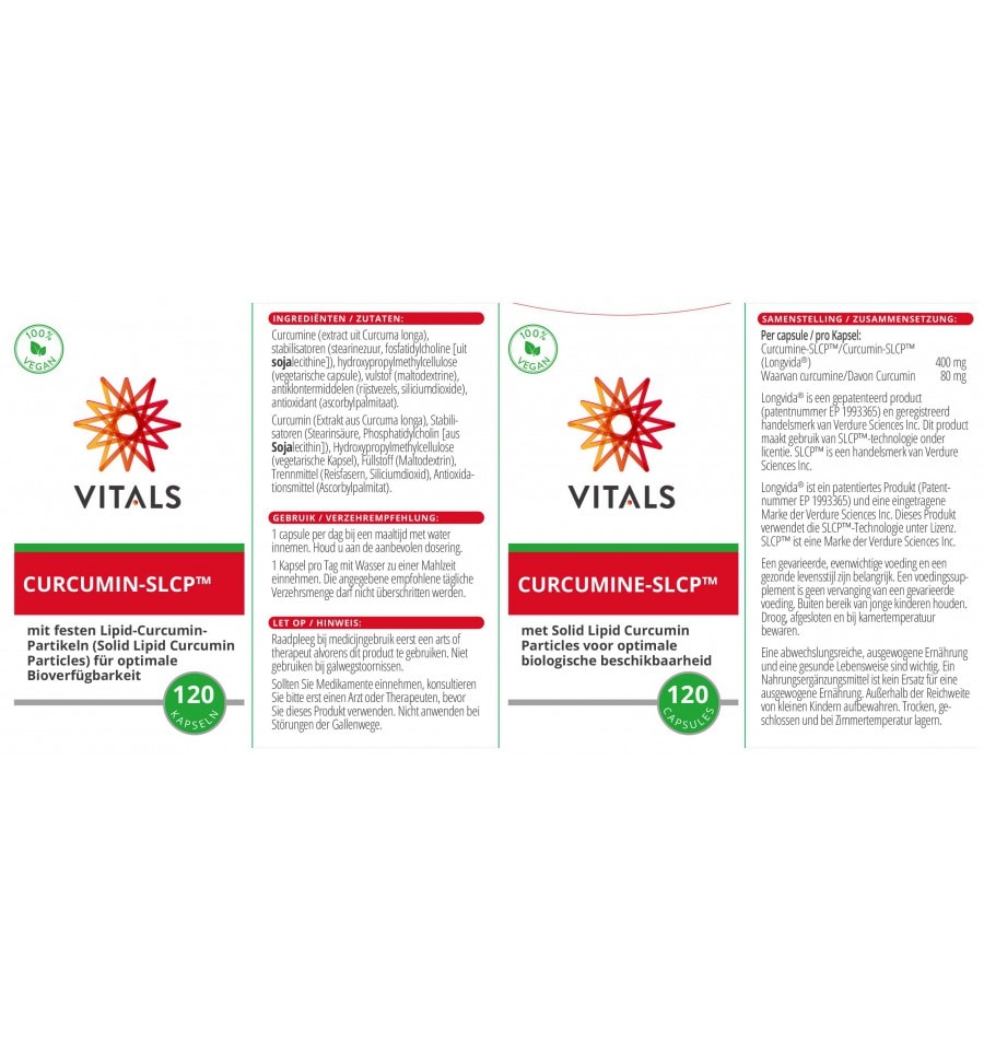 De grootste uitdaging bij het ontwikkelen van curcuminepreparaten met een optimale werkzaamheid, is het overwinnen van de problemen bij de opneembaarheid en biologische beschikbaarheid ervan. Curcumine in een ‘onbewerkte’ vorm wordt na orale inname in de darm en in de lever immers snel omgezet in onwerkzame metabolieten, zoals curcumine-glucuronide, die door het lichaam weer snel worden uitgescheiden. Verdure Sciences, de producent van Curcumine-SLCP™ van Vitals, is er na jarenlang onderzoek en samenwerking met de Universiteit van Californië (UCLA) in geslaagd om deze problemen op te lossen. Door middel van hun gepatenteerde technologie, hebben zij de opneembaarheid van curcumine met 65x weten te vergroten en de biologische beschikbaarheid met maar liefst 285x (ten opzichte van standaard curcumine-preparaten bestaande uit 95% curcumine). Deze doorbraak is bereikt na het testen van vele verschillende formuleringen op hun biologische beschikbaarheid bij mensen. De meest optimale resultaten werden verkregen bij een formulering die in feite geïnspireerd is op de Indiase keuken, waar bij de bereiding van currypasta’s kurkuma wordt gemengd met olieachtige bestanddelen. In hun curcumine-product met de merknaam Longvida® wordt gebruikgemaakt van zogenoemde Solid Lipid Curcumin Particles, waarbij de curcumine is verpakt in een vetachtig deeltje dat bestaat uit drie langeketenvetten die ook in voeding voorkomen, namelijk fosfatidylcholine, stearinezuur en ascorbylpalmitaat.