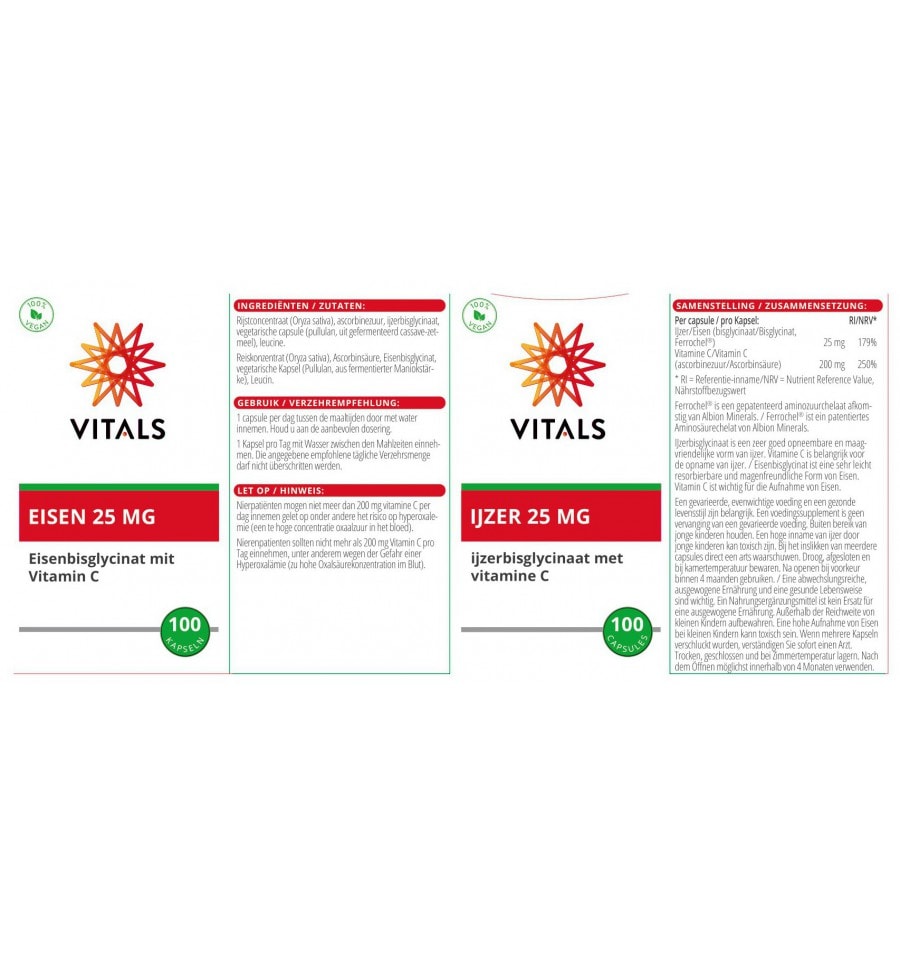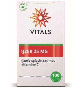 Vitals IJzer 25mg Capsules zijn een voedingssupplement met hoogwaardig aminozuurchelaat (ijzerbisglycinaat) van Albion Minerals, Ferrochel® en worden aangevuld met vitamine C voor een betere ijzeropname. Deze vorm van ijzer heeft een bijzonder goede biologische beschikbaarheid en is mild voor de maag. IJzer draagt bij aan een normale werking van het immuunsysteem, een normale cognitieve functie en een gezonde energiestofwisseling. Het supplement helpt vermoeidheid te verminderen en speelt een rol bij het celdelingsproces. De verpakking van deze supplementen is duurzaam en volledig recyclebaar. Het doosje is van PaperWise karton gemaakt, terwijl het potje en de etiketten van recyclebaar biobased plastic zijn gemaakt. Het gebruik van recyclebare materialen in de verpakking draagt bij aan een verminderde druk op het milieu.