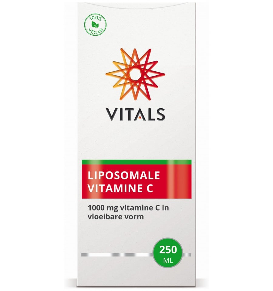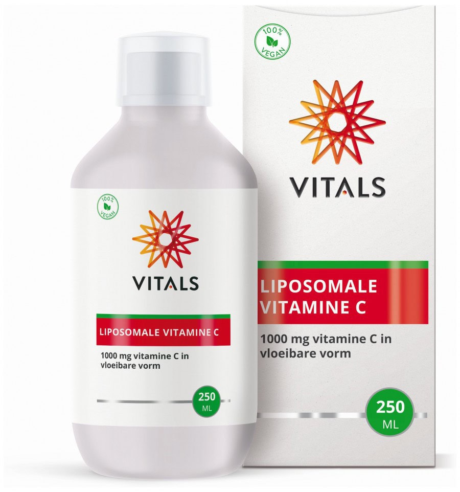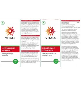 Liposomale Vitamine C van Vitals bevat 1000 mg vloeibare, liposomale vitamine C per 5 ml, in drie verschillende vormen (natriumascorbaat, kaliumascorbaat en ascorbinezuur). Liposomen zijn vetbolletjes met een fosfolipiden-dubbellaag, waarbinnen de actieve stof zich bevindt. Celmembranen bestaan ook uit een fosfolipiden-dubbellaag, waardoor de actieve stoffen uit de liposomen uitstekend kunnen worden opgenomen in de cel.