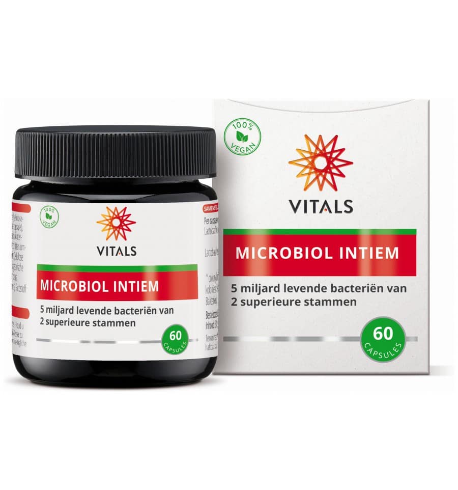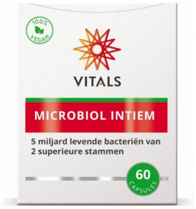 Vitals Microbiol Intiem Capsules is een probioticum dat speciaal is ontwikkeld voor vrouwen. Het bevat een combinatie van twee krachtige stammen, Lactobacillus rhamnosus GR-1 en Lactobacillus reuteri RC-14, die oorspronkelijk voorkomen in de vrouwelijke distale urethra. Deze stammen kunnen helpen bij het behoud van een gezonde vaginale flora. Met 5 miljard cfu per capsule biedt Microbiol Intiem een hoge dosering van deze stammen. Bovendien wordt de levensvatbaarheid van de bacteriën beschermd door de speciale verpakking.