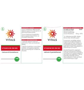 Vitals Vitamine B5 250mg is een voedingssupplement dat een hoge dosering vitamine B5 in zuivere vorm bevat. Dit supplement kan helpen vermoeidheid te verminderen en het energieniveau te ondersteunen door energie vrij te maken uit vet, koolhydraten en eiwitten. Daarnaast kan dit supplement bijdragen aan normale mentale prestaties, zoals weerstand tegen stress, en een normale synthese en metabolisme van steroïdhormonen, vitamine D en sommige neurotransmitters.