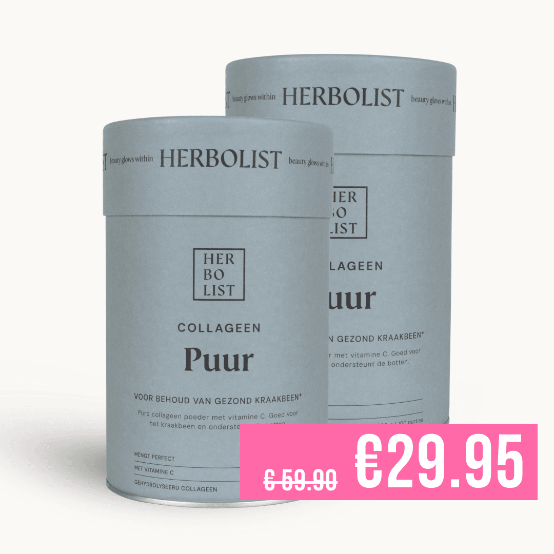 Gehydrolyseerd collageen bestellen? Herbolist Collageen Beauty Blend is op basis van rundercollageen en het populairste collageen poeder tegen huidveroudering. Het zorgt voor een stralende, gezonde en jeugdige huid. Het product is geliefd bij bekendheden zoals de Kardashians, Hailey Bieber en Jennifer Aniston, allen fans van een hydrolyzed collagen supplement.