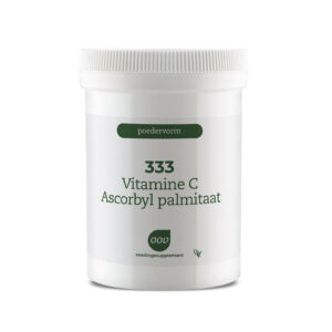 AOV 333 Vitamine C Ascorbyl Palmitaat is een handig supplement in poedervorm, dat goed opneembare vitamine C bevat. Dit supplement is eenvoudig te mengen met yoghurt of kwark en met behulp van het handige doseerlepeltje kunt u de juiste hoeveelheid eenvoudig afmeten. Vitamine C speelt een belangrijke rol bij het ondersteunen van de afweer en draagt mede bij aan een goede weerstand, samen met andere belangrijke stoffen zoals vitamine D. Daarnaast is vitamine C van essentieel belang voor het behoud van sterke botten en tanden, een gezonde huid en een goede conditie van de bloedvaten.